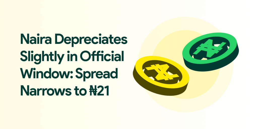 Naira Depreciates Slightly in Official Window: Spread Narrows to ₦21